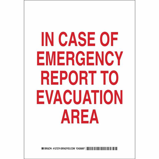 This is manufactured by Brady Corporation. The manufacturer part number is 127275. Label with a size of 14.00" l x 10.00" w (355.6mm x 254.0mm). The product is rohs3 compliant. It is assigned with possible HTSUS value of 8310.00.0000. It is shipped in bulk package . It has a classic red legend, white background colour. The product brady®, is a highly preferred choice for users. The product is made from highly stable and reliable aluminum. In addition, it is reach unaffected. Its typical moisture sensitivity level is not applicable. A bespoke label is a in case of emergency report to evacuation area label. It has a long 4 weeks standard lead time. The product is designated with the ear99 code number.