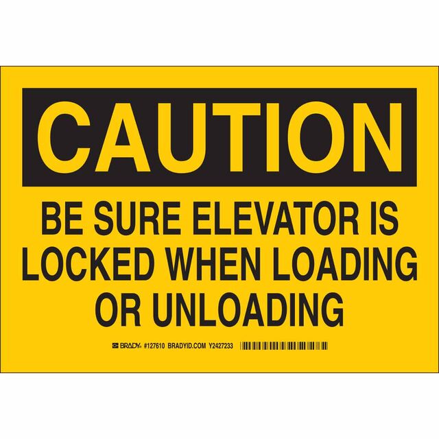This is manufactured by Brady Corporation. The manufacturer part number is 127611. Label with a size of 14.00" l x 10.00" w (355.6mm x 254.0mm). The product is not applicable. It is assigned with possible HTSUS value of 8310.00.0000. It has a classic black legend, yellow background colour. The product brady®, is a highly preferred choice for users. The product is made from highly stable and reliable aluminum. In addition, it is reach affected. Its typical moisture sensitivity level is not applicable. In addition, bulk is the available packaging type of the product. A bespoke label is a caution. be sure elevator is locked when loading or unloading label. The brady corporation's product offers user-desired applications. The product is designated with the ear99 code number.