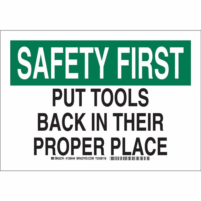 This is manufactured by Brady Corporation. The manufacturer part number is 128445. Label with a size of 14.00" l x 10.00" w (355.6mm x 254.0mm). The product is rohs3 compliant. It is assigned with possible HTSUS value of 8310.00.0000. It is shipped in bulk package . It has a classic black and green legend, white background colour. The product brady®, is a highly preferred choice for users. The product is made from highly stable and reliable aluminum. In addition, it is reach unaffected. Its typical moisture sensitivity level is not applicable. A bespoke label is a safety first. put tools back in their proper place label. The product is suitable for use with warning. It has a long 4 weeks standard lead time. The product is designated with the ear99 code number.