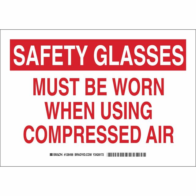 This is manufactured by Brady Corporation. The manufacturer part number is 128499. Label with a size of 14.00" l x 10.00" w (355.6mm x 254.0mm). The product is rohs3 compliant. It is assigned with possible HTSUS value of 8310.00.0000. It has a classic red legend, white background colour. The product brady®, is a highly preferred choice for users. The product is made from highly stable and reliable aluminum. In addition, it is reach unaffected. Its typical moisture sensitivity level is not applicable. In addition, bulk is the available packaging type of the product. A bespoke label is a safety glasses. must be worn when using compressed air label. The product is suitable for use with notice. It has a long 4 weeks standard lead time. The brady corporation's product offers user-desired applications. The product is designated with the ear99 code number.