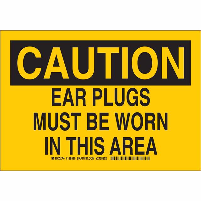 This is manufactured by Brady Corporation. The manufacturer part number is 128529. Label with a size of 14.00" l x 10.00" w (355.6mm x 254.0mm). The product is not applicable. It is assigned with possible HTSUS value of 8310.00.0000. It is shipped in bulk package . It has a classic black legend, yellow background colour. The product brady®, is a highly preferred choice for users. The product is made from highly stable and reliable aluminum. In addition, it is reach affected. Its typical moisture sensitivity level is not applicable. A bespoke label is a caution. ear plugs must be worn in this area label. The product is suitable for use with caution. The product is designated with the ear99 code number.
