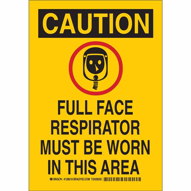This is manufactured by Brady Corporation. The manufacturer part number is 128619. Label with a size of 14.00" l x 10.00" w (355.6mm x 254.0mm). The product is not applicable. It is assigned with possible HTSUS value of 8310.00.0000. It is shipped in bulk package . It has a classic black and red legend, yellow background colour. The product brady®, is a highly preferred choice for users. The product is made from highly stable and reliable aluminum. In addition, it is reach affected. Its typical moisture sensitivity level is not applicable. A bespoke label is a caution. full face respirator must be worn in this area label. The product is designated with the ear99 code number.
