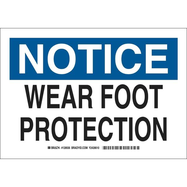 This is manufactured by Brady Corporation. The manufacturer part number is 128939. Label with a size of 14.00" l x 10.00" w (355.6mm x 254.0mm). The product is rohs3 compliant. It is assigned with possible HTSUS value of 3926.90.9989. It has a classic black and blue legend, white background colour. The product brady®, is a highly preferred choice for users. The product is made from highly stable and reliable polyester. In addition, it is reach unaffected. Its typical moisture sensitivity level is not applicable. In addition, bulk is the available packaging type of the product. A bespoke label is a notice. wear foot protection label. The brady corporation's product offers user-desired applications. The product is designated with the ear99 code number.