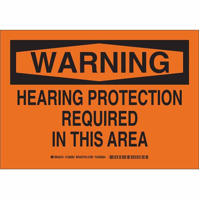 This is manufactured by Brady Corporation. The manufacturer part number is 128991. Label with a size of 14.00" l x 10.00" w (355.6mm x 254.0mm). The product is rohs3 compliant. It is assigned with possible HTSUS value of 8310.00.0000. It is shipped in bulk package . It has a classic black legend, orange background colour. The product brady®, is a highly preferred choice for users. The product is made from highly stable and reliable aluminum. In addition, it is reach unaffected. Its typical moisture sensitivity level is not applicable. A bespoke label is a warning. hearing protection required in this area label. It has a long 4 weeks standard lead time. The product is designated with the ear99 code number.