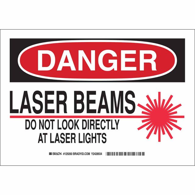 This is manufactured by Brady Corporation. The manufacturer part number is 129261. Label with a size of 14.00" l x 10.00" w (355.6mm x 254.0mm). The product is rohs3 compliant. It is assigned with possible HTSUS value of 8310.00.0000. It has a classic black and red legend, white background colour. The product brady®, is a highly preferred choice for users. The product is made from highly stable and reliable aluminum. In addition, it is reach unaffected. Its typical moisture sensitivity level is not applicable. In addition, bulk is the available packaging type of the product. A bespoke label is a danger. laser beams do not look directly at laser lights label. The product is suitable for use with warning. It has a long 4 weeks standard lead time. The brady corporation's product offers user-desired applications. The product is designated with the ear99 code number.