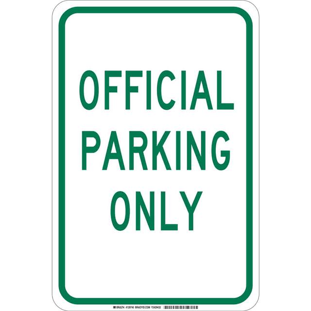 This is manufactured by Brady Corporation. The manufacturer part number is 129738. Label with a size of 18.00" l x 12.00" w (457.2mm x 304.8mm). The product is rohs3 compliant. It is assigned with possible HTSUS value of 8310.00.0000. It is shipped in bulk package . It has a classic green legend, white background colour. The product brady®, is a highly preferred choice for users. The product is made from highly stable and reliable aluminum. In addition, it is reach unaffected. Its typical moisture sensitivity level is not applicable. A bespoke label is a official parking only label. The product is suitable for use with warning. It has a long 4 weeks standard lead time. The product is designated with the ear99 code number.