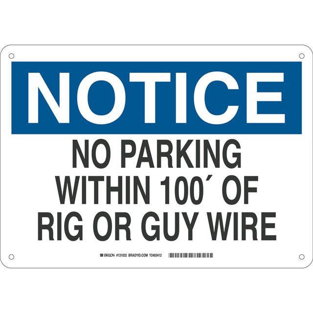This is manufactured by Brady Corporation. The manufacturer part number is 131032. Label with a size of 14.00" l x 10.00" w (355.6mm x 254.0mm). The product is rohs3 compliant. It is assigned with possible HTSUS value of 3926.90.9985. It is shipped in bulk package . It has a classic black and blue legend, white background colour. The product brady®, is a highly preferred choice for users. The product is made from highly stable and reliable fiberglass. In addition, it is reach unaffected. Its typical moisture sensitivity level is not applicable. A bespoke label is a notice. no parking within 100' of rig or guywire label. The product is suitable for use with notice. The product is designated with the ear99 code number.