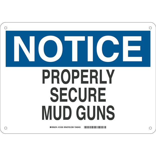 This is manufactured by Brady Corporation. The manufacturer part number is 131035. Label with a size of 14.00" l x 10.00" w (355.6mm x 254.0mm). The product is rohs3 compliant. It is assigned with possible HTSUS value of 3926.90.9985. It is shipped in bulk package . It has a classic black and blue legend, white background colour. The product brady®, is a highly preferred choice for users. The product is made from highly stable and reliable fiberglass. In addition, it is reach unaffected. Its typical moisture sensitivity level is not applicable. A bespoke label is a notice. properly secure mud guns label. The product is suitable for use with warning. It has a long 4 weeks standard lead time. The product is designated with the ear99 code number.