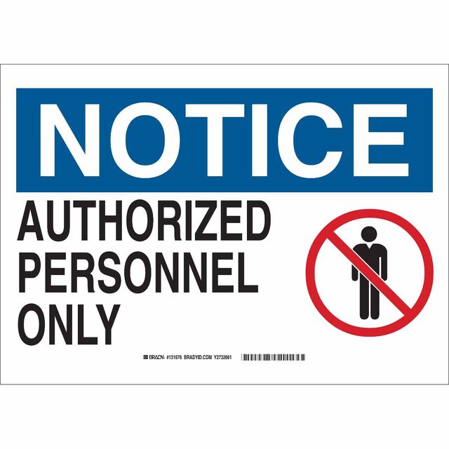 This is manufactured by Brady Corporation. The manufacturer part number is 131678. Label with a size of 14.00" l x 10.00" w (355.6mm x 254.0mm). The product is rohs3 compliant. It is assigned with possible HTSUS value of 3926.90.9989. It has a classic black, blue and red legend, white background colour. The product brady®, is a highly preferred choice for users. The product is made from highly stable and reliable fiberglass. In addition, it is reach unaffected. Its typical moisture sensitivity level is not applicable. In addition, bulk is the available packaging type of the product. A bespoke label is a notice. authorized personnel only label. The brady corporation's product offers user-desired applications. The product is designated with the ear99 code number.