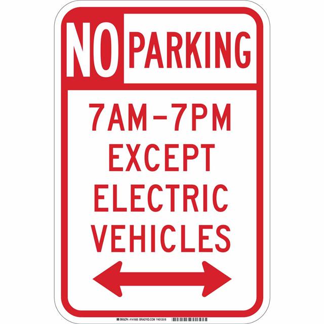 This is manufactured by Brady Corporation. The manufacturer part number is 141665. Label with a size of 18.00" l x 12.00" w (457.2mm x 304.8mm). The product is rohs3 compliant. It is assigned with possible HTSUS value of 8310.00.0000. It is shipped in bulk package . It has a classic red legend, white background colour. The product brady®, is a highly preferred choice for users. The product is made from highly stable and reliable aluminum. In addition, it is reach unaffected. Its typical moisture sensitivity level is not applicable. A bespoke label is a no parking 7am-7pm except electric vehicles label. It has a long 4 weeks standard lead time. The product is designated with the ear99 code number.