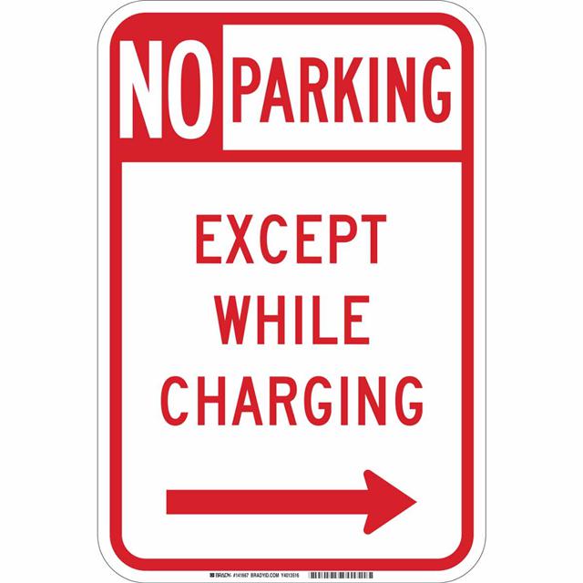 This is manufactured by Brady Corporation. The manufacturer part number is 141667. Label with a size of 18.00" l x 12.00" w (457.2mm x 304.8mm). The product is rohs3 compliant. It is assigned with possible HTSUS value of 8310.00.0000. It is shipped in bulk package . It has a classic red legend, white background colour. The product brady®, is a highly preferred choice for users. The product is made from highly stable and reliable aluminum. In addition, it is reach unaffected. Its typical moisture sensitivity level is not applicable. A bespoke label is a no parking except while charging label. It has a long 4 weeks standard lead time. The product is designated with the ear99 code number.