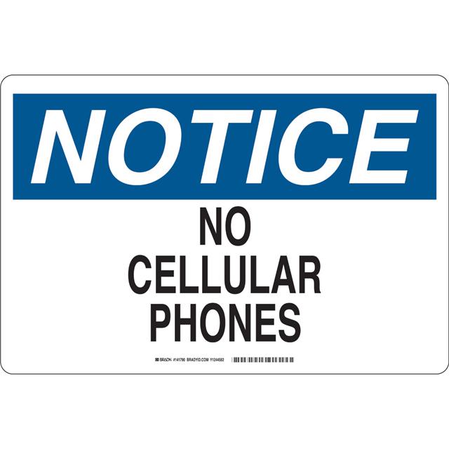 This is manufactured by Brady Corporation. The manufacturer part number is 141790. Label with a size of 18.00" l x 12.00" w (457.2mm x 304.8mm). The product is rohs3 compliant. It is assigned with possible HTSUS value of 8310.00.0000. It is shipped in bulk package . It has a classic black and blue legend, white background colour. The product brady®, is a highly preferred choice for users. The product is made from highly stable and reliable aluminum. In addition, it is reach unaffected. Its typical moisture sensitivity level is not applicable. A bespoke label is a notice. no cellular phones label. The product is designated with the ear99 code number.