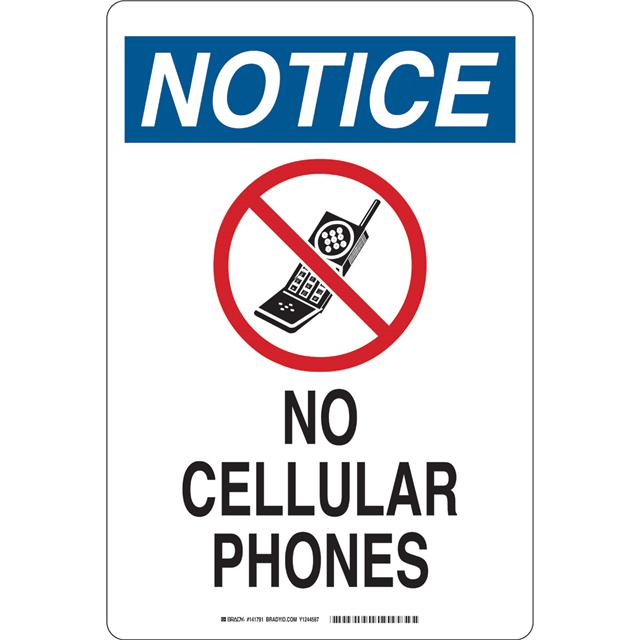 This is manufactured by Brady Corporation. The manufacturer part number is 141791. Label with a size of 18.00" l x 12.00" w (457.2mm x 304.8mm). The product is rohs3 compliant. It is assigned with possible HTSUS value of 8310.00.0000. It is shipped in bulk package . It has a classic black, blue and red legend, white background colour. The product brady®, is a highly preferred choice for users. The product is made from highly stable and reliable aluminum. In addition, it is reach unaffected. Its typical moisture sensitivity level is not applicable. A bespoke label is a notice. no cellular phones label. The product is suitable for use with notice. It has a long 4 weeks standard lead time. The product is designated with the ear99 code number.