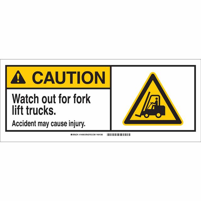 This is manufactured by Brady Corporation. The manufacturer part number is 144095. Label with a size of 17.00" l x 7.00" w (431.8mm x 177.8mm). The product is rohs3 compliant. It is assigned with possible HTSUS value of 3926.90.9985. It is shipped in bulk package . It has a classic black and yellow legend, white background colour. The product brady®, is a highly preferred choice for users. The product is made from highly stable and reliable fiberglass. In addition, it is reach unaffected. Its typical moisture sensitivity level is not applicable. A bespoke label is a caution. watch out for fork lift trucks. accident may cause injury label. The product is suitable for use with caution. It has a long 4 weeks standard lead time. The product is designated with the ear99 code number.