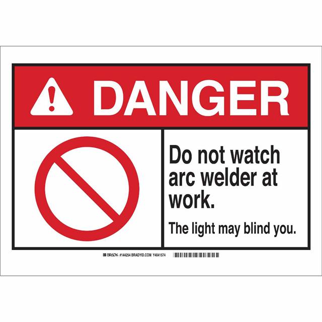 This is manufactured by Brady Corporation. The manufacturer part number is 144258. Label with a size of 14.00" l x 10.00" w (355.6mm x 254.0mm). The product is rohs3 compliant. It is assigned with possible HTSUS value of 8310.00.0000. It is shipped in bulk package . It has a classic black and red legend, white background colour. The product brady®, is a highly preferred choice for users. The product is made from highly stable and reliable aluminum. In addition, it is reach unaffected. Its typical moisture sensitivity level is not applicable. A bespoke label is a danger. do not watch arc welder at work. the light may blind you. label. The product is suitable for use with danger. The product is designated with the ear99 code number.