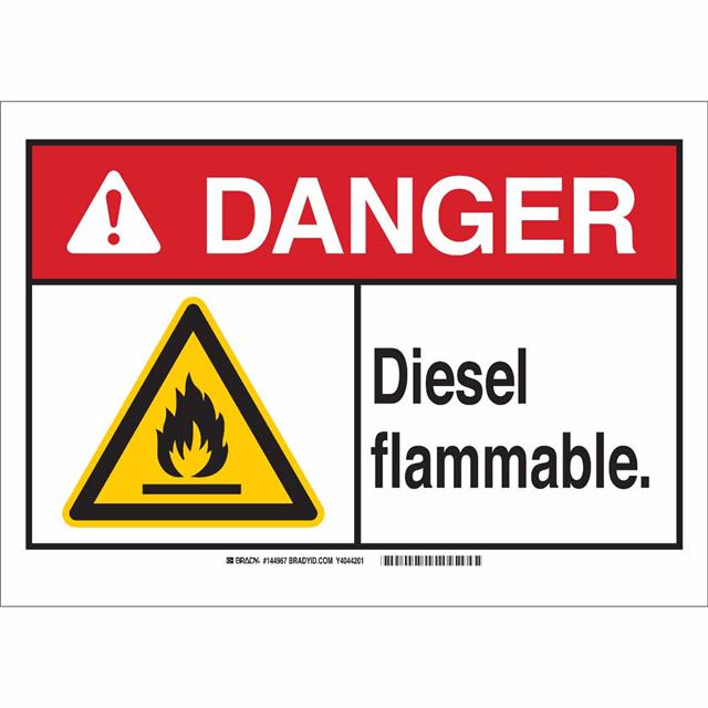 This is manufactured by Brady Corporation. The manufacturer part number is 144966. Label with a size of 14.00" l x 10.00" w (355.6mm x 254.0mm). The product is rohs3 compliant. It is assigned with possible HTSUS value of 8310.00.0000. It is shipped in bulk package . It has a classic black, red and yellow legend, white background colour. The product brady®, is a highly preferred choice for users. The product is made from highly stable and reliable aluminum. In addition, it is reach unaffected. Its typical moisture sensitivity level is not applicable. A bespoke label is a danger. diesel. flammable label. It has a long 4 weeks standard lead time. The product is designated with the ear99 code number.