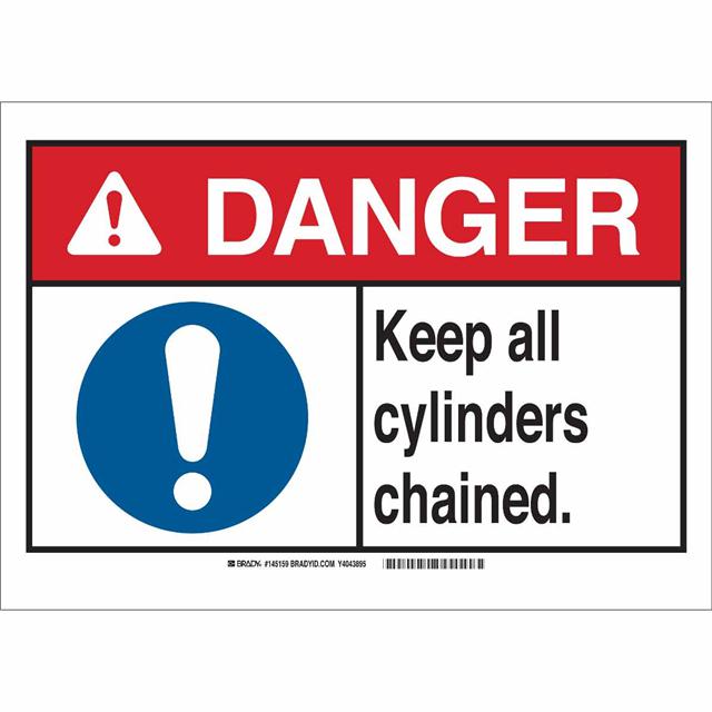 This is manufactured by Brady Corporation. The manufacturer part number is 145159. Label with a size of 14.00" l x 10.00" w (355.6mm x 254.0mm). The product is rohs3 compliant. It is assigned with possible HTSUS value of 3926.90.9985. It is shipped in bulk package . It has a classic black, blue and red legend, white background colour. The product brady®, is a highly preferred choice for users. The product is made from highly stable and reliable polyester. In addition, it is reach unaffected. Its typical moisture sensitivity level is not applicable. A bespoke label is a danger. keep all cylinders chained label. The product is suitable for use with danger. It has a long 4 weeks standard lead time. The product is designated with the ear99 code number.