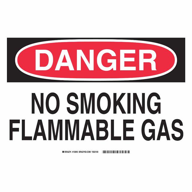 This is manufactured by Brady Corporation. The manufacturer part number is 15846. Label with a size of 14.00" l x 10.00" w (355.6mm x 254.0mm). The product is rohs3 compliant. It is assigned with possible HTSUS value of 8310.00.0000. It has a classic black and red legend, white background colour. The product brady®, is a highly preferred choice for users. The product is made from highly stable and reliable aluminum. In addition, it is reach unaffected. Its typical moisture sensitivity level is not applicable. In addition, bulk is the available packaging type of the product. A bespoke label is a danger. no smoking flammable gas label. The product is suitable for use with danger. It has a long 4 weeks standard lead time. The brady corporation's product offers user-desired applications. The product is designated with the ear99 code number.