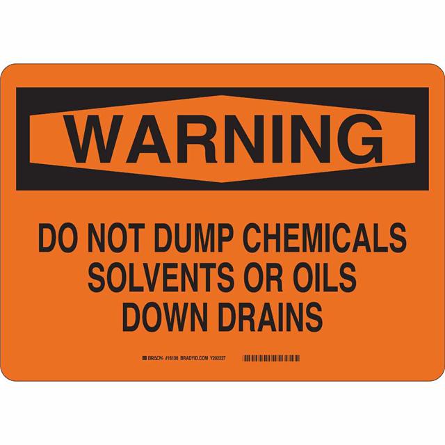 This is manufactured by Brady Corporation. The manufacturer part number is 16108. Label with a size of 14.00" l x 10.00" w (355.6mm x 254.0mm). The product is not applicable. It is assigned with possible HTSUS value of 3926.90.9989. It has a classic black legend, orange background colour. The product brady®, is a highly preferred choice for users. The product is made from highly stable and reliable fiberglass. In addition, it is reach unaffected. Its typical moisture sensitivity level is not applicable. In addition, bulk is the available packaging type of the product. A bespoke label is a warning. do not dump chemicals, solvents or oils down drains label. The product is suitable for use with warning. The brady corporation's product offers user-desired applications. The product is designated with the ear99 code number.