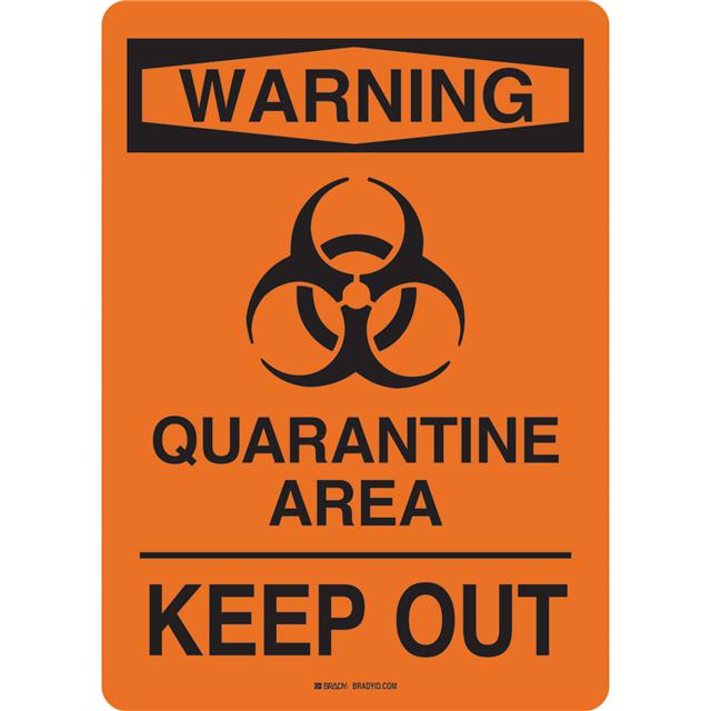 This is manufactured by Brady Corporation. The manufacturer part number is 170184. Label with a size of 10.00" l x 7.00" w (254.0mm x 177.8mm). The product is rohs compliant. It is assigned with possible HTSUS value of 3926.90.9989. It has a classic black legend, orange background colour. The product b-401, is a highly preferred choice for users. The product is made from highly stable and reliable plastic. Its typical moisture sensitivity level is not applicable. In addition, bulk is the available packaging type of the product. A bespoke label is a warning. quarantine area. keep out. label. The product is suitable for use with warning. The brady corporation's product offers user-desired applications. The product is designated with the ear99 code number.
