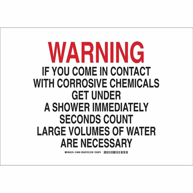 This is manufactured by Brady Corporation. The manufacturer part number is 18899. Label with a size of 14.00" l x 10.00" w (355.6mm x 254.0mm). The product is rohs3 compliant. It is assigned with possible HTSUS value of 3926.90.9985. It is shipped in bulk package . It has a classic black and red legend, white background colour. The product brady®, is a highly preferred choice for users. The product is made from highly stable and reliable polyester. In addition, it is reach unaffected. Its typical moisture sensitivity level is not applicable. A bespoke label is a warning. if you come in contact with corrosive chemicals get under a shower immediately seconds count large volumes of water a… label. The product is suitable for use with warning. It has a long 4 weeks standard lead time. The product is designated with the ear99 code number.
