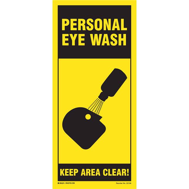 This is manufactured by Brady Corporation. The manufacturer part number is 22106LS. Label with a size of 18.00" l x 8.00" w (457.2mm x 203.2mm). The product is rohs3 compliant. It is assigned with possible HTSUS value of 3926.90.9985. It is shipped in bulk package . It has a classic black legend, yellow background colour. The product brady®, is a highly preferred choice for users. The product is made from highly stable and reliable polyethylene. In addition, it is reach unaffected. Its typical moisture sensitivity level is not applicable. A bespoke label is a personal eye wash. keep area clear label. The product is suitable for use with warning. It has a long 4 weeks standard lead time. The product is designated with the ear99 code number.