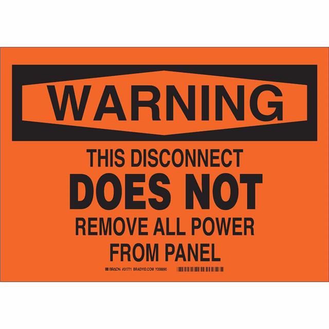 This is manufactured by Brady Corporation. The manufacturer part number is 31776. Label with a size of 14.00" l x 10.00" w (355.6mm x 254.0mm). The product is not applicable. It is assigned with possible HTSUS value of 3926.90.9985. It is shipped in bulk package . It has a classic black legend, orange background colour. The product brady®, is a highly preferred choice for users. The product is made from highly stable and reliable fiberglass. In addition, it is reach unaffected. Its typical moisture sensitivity level is not applicable. A bespoke label is a warning. this disconnect does not remove all power from panel label. The product is suitable for use with warning. The product is designated with the ear99 code number.