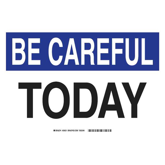 This is manufactured by Brady Corporation. The manufacturer part number is 35621. Label with a size of 14.00" l x 10.00" w (355.6mm x 254.0mm). The product is rohs3 compliant. It is assigned with possible HTSUS value of 8310.00.0000. It has a classic black and blue legend, white background colour. The product brady®, is a highly preferred choice for users. The product is made from highly stable and reliable aluminum. In addition, it is reach unaffected. Its typical moisture sensitivity level is not applicable. In addition, bulk is the available packaging type of the product. A bespoke label is a be careful. today label. The product is suitable for use with warning. The brady corporation's product offers user-desired applications. The product is designated with the ear99 code number.