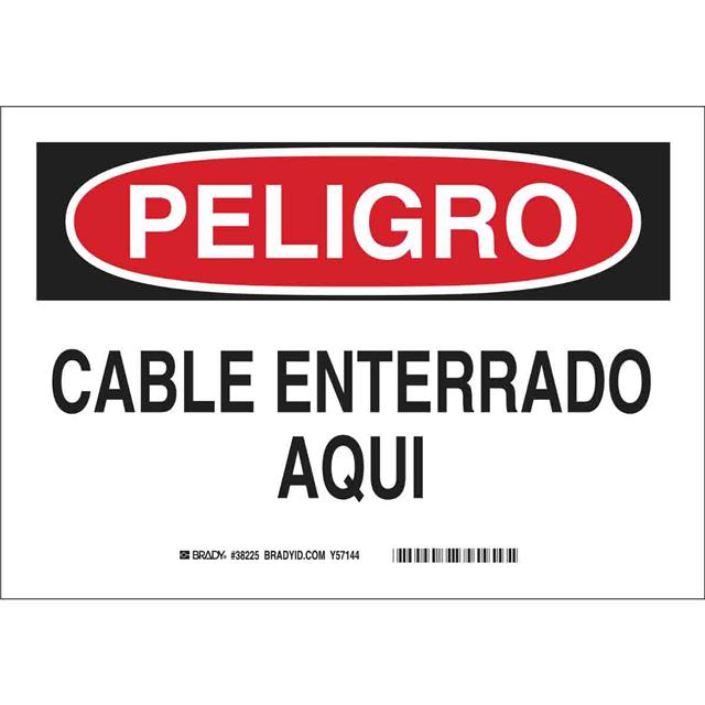 This is manufactured by Brady Corporation. The manufacturer part number is 38225. Label with a size of 14.00" l x 10.00" w (355.6mm x 254.0mm). The product is rohs3 compliant. It is assigned with possible HTSUS value of 8310.00.0000. It is shipped in bulk package . It has a classic black and red legend, white background colour. The product brady®, is a highly preferred choice for users. The product is made from highly stable and reliable aluminum. In addition, it is reach unaffected. Its typical moisture sensitivity level is not applicable. A bespoke label is a danger/peligro. cable brd here/cable enterrado aqui label. The product is suitable for use with danger. It has a long 4 weeks standard lead time. The product is designated with the ear99 code number.