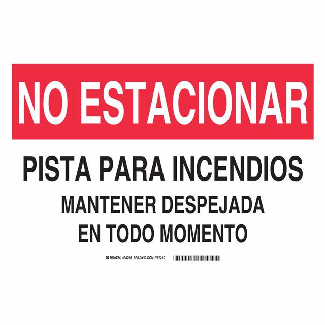 This is manufactured by Brady Corporation. The manufacturer part number is 38293. Label with a size of 14.00" l x 10.00" w (355.6mm x 254.0mm). The product is rohs3 compliant. It is assigned with possible HTSUS value of 8310.00.0000. It is shipped in bulk package . It has a classic black and red legend, white background colour. The product brady®, is a highly preferred choice for users. The product is made from highly stable and reliable aluminum. In addition, it is reach unaffected. Its typical moisture sensitivity level is not applicable. A bespoke label is a no estacionar. pista para incendios mantener despejada en todo momento label. The product is suitable for use with warning. The product is designated with the ear99 code number.