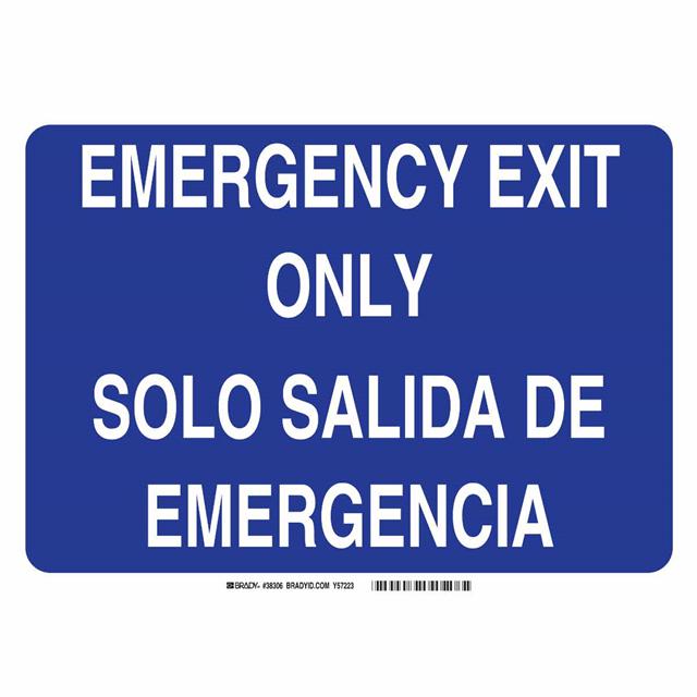 This is manufactured by Brady Corporation. The manufacturer part number is 38306. Label with a size of 14.00" l x 10.00" w (355.6mm x 254.0mm). The product is rohs3 compliant. It is assigned with possible HTSUS value of 8310.00.0000. It is shipped in bulk package . It has a classic white legend, blue background colour. The product brady®, is a highly preferred choice for users. The product is made from highly stable and reliable aluminum. In addition, it is reach unaffected. Its typical moisture sensitivity level is not applicable. A bespoke label is a emergency exit only/solo salida de emergencia label. The product is suitable for use with emergency. It has a long 4 weeks standard lead time. The product is designated with the ear99 code number.