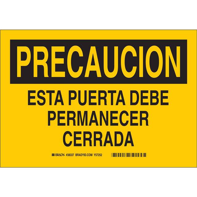This is manufactured by Brady Corporation. The manufacturer part number is 38337. Label with a size of 14.00" l x 10.00" w (355.6mm x 254.0mm). The product is not applicable. It is assigned with possible HTSUS value of 8310.00.0000. It is shipped in bulk package . It has a classic black legend, yellow background colour. The product brady®, is a highly preferred choice for users. The product is made from highly stable and reliable aluminum. In addition, it is reach affected. Its typical moisture sensitivity level is not applicable. A bespoke label is a esta puerta debe permanecer cerrada sign label. The product is suitable for use with warning. It has a long 4 weeks standard lead time. The product is designated with the ear99 code number.