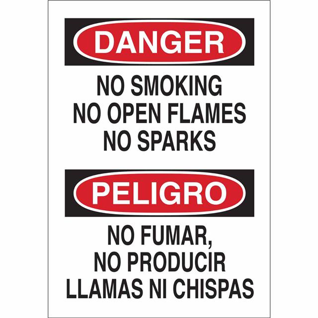 This is manufactured by Brady Corporation. The manufacturer part number is 38417. Label with a size of 14.00" l x 10.00" w (355.6mm x 254.0mm). The product is rohs3 compliant. It is assigned with possible HTSUS value of 8310.00.0000. It is shipped in bulk package . It has a classic black and red legend, white background colour. The product brady®, is a highly preferred choice for users. The product is made from highly stable and reliable aluminum. In addition, it is reach unaffected. Its typical moisture sensitivity level is not applicable. A bespoke label is a danger. no smoking no open flames no sparks/no fumar no producir llamas no chispas de fuego label. The product is suitable for use with danger. It has a long 4 weeks standard lead time. The product is designated with the ear99 code number.