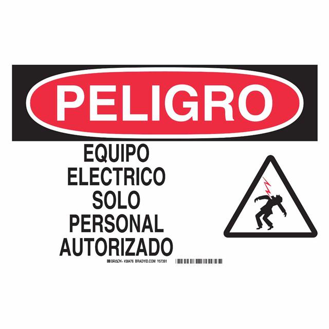 This is manufactured by Brady Corporation. The manufacturer part number is 38476. Label with a size of 14.00" l x 10.00" w (355.6mm x 254.0mm). The product is rohs3 compliant. It is assigned with possible HTSUS value of 8310.00.0000. It is shipped in bulk package . It has a classic black and red legend, white background colour. The product brady®, is a highly preferred choice for users. The product is made from highly stable and reliable aluminum. In addition, it is reach unaffected. Its typical moisture sensitivity level is not applicable. A bespoke label is a peligro. equipo electrico solo personal autorizado label. The product is suitable for use with danger. It has a long 4 weeks standard lead time. The product is designated with the ear99 code number.