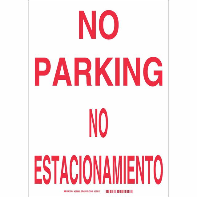 This is manufactured by Brady Corporation. The manufacturer part number is 38495. Label with a size of 14.00" l x 10.00" w (355.6mm x 254.0mm). The product is rohs3 compliant. It is assigned with possible HTSUS value of 8310.00.0000. It is shipped in bulk package . It has a classic red legend, white background colour. The product brady®, is a highly preferred choice for users. The product is made from highly stable and reliable aluminum. In addition, it is reach unaffected. Its typical moisture sensitivity level is not applicable. A bespoke label is a no parking/no estacionamento label. The product is suitable for use with warning. It has a long 4 weeks standard lead time. The product is designated with the ear99 code number.