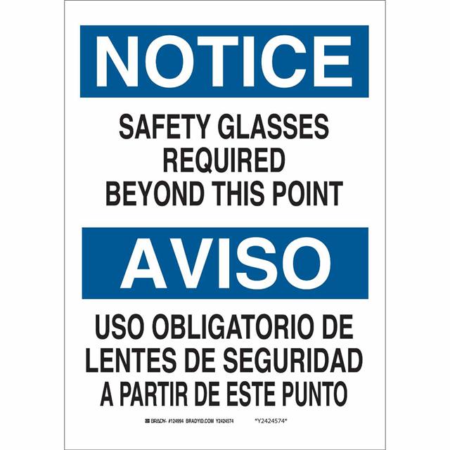 This is manufactured by Brady Corporation. The manufacturer part number is 39613. Label with a size of 20.00" l x 14.00" w (508.0mm x 355.6mm). The product is rohs3 compliant. It is assigned with possible HTSUS value of 3926.90.9985. It is shipped in bulk package . It has a classic black and blue legend, white background colour. The product brady®, is a highly preferred choice for users. The product is made from highly stable and reliable fiberglass. In addition, it is reach unaffected. Its typical moisture sensitivity level is not applicable. A bespoke label is a notice/aviso. safety glasses required beyond this point/uso obligatorio de lentes de seguridad a partir de este punto label. The product is suitable for use with notice. It has a long 4 weeks standard lead time. The product is designated with the ear99 code number.
