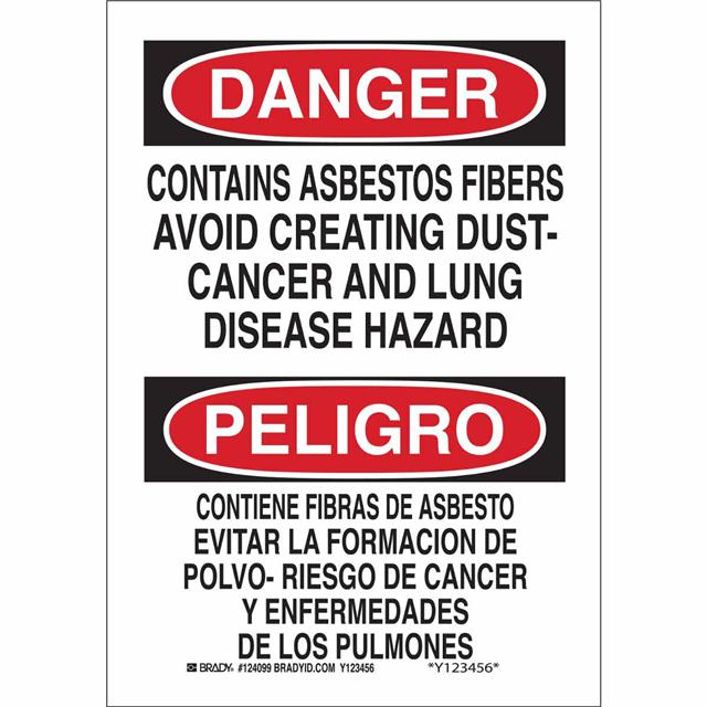 This is manufactured by Brady Corporation. The manufacturer part number is 39658. Label with a size of 20.00" l x 14.00" w (508.0mm x 355.6mm). The product is rohs3 compliant. It is assigned with possible HTSUS value of 3926.90.9985. It is shipped in bulk package . It has a classic black and red legend, white background colour. The product brady®, is a highly preferred choice for users. The product is made from highly stable and reliable fiberglass. In addition, it is reach unaffected. Its typical moisture sensitivity level is not applicable. A bespoke label is a danger/peligro. contains asbestos fibers avoid creating dust-cancer and lung disease hazard/contiene fibras de asbesto evitar … label. The product is suitable for use with danger. It has a long 4 weeks standard lead time. The product is designated with the ear99 code number.