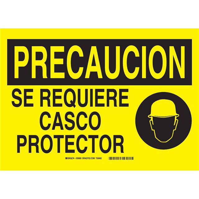 This is manufactured by Brady Corporation. The manufacturer part number is 39869. Label with a size of 14.00" l x 10.00" w (355.6mm x 254.0mm). The product is rohs3 compliant. It is assigned with possible HTSUS value of 3926.90.9985. It is shipped in bulk package . It has a classic black legend, yellow background colour. The product brady®, is a highly preferred choice for users. The product is made from highly stable and reliable fiberglass. In addition, it is reach unaffected. Its typical moisture sensitivity level is not applicable. A bespoke label is a precaucion. se requiere casco protector label. The product is suitable for use with caution. It has a long 4 weeks standard lead time. The product is designated with the ear99 code number.