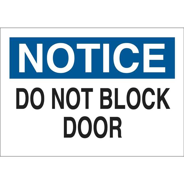 This is manufactured by Brady Corporation. The manufacturer part number is 41094. Label with a size of 14.00" l x 10.00" w (355.6mm x 254.0mm). The product is rohs3 compliant. It is assigned with possible HTSUS value of 8310.00.0000. It has a classic black and blue legend, white background colour. The product brady®, is a highly preferred choice for users. The product is made from highly stable and reliable aluminum. In addition, it is reach unaffected. Its typical moisture sensitivity level is not applicable. In addition, bulk is the available packaging type of the product. A bespoke label is a notice. do not block door label. The product is suitable for use with notice. It has a long 4 weeks standard lead time. The brady corporation's product offers user-desired applications. The product is designated with the ear99 code number.