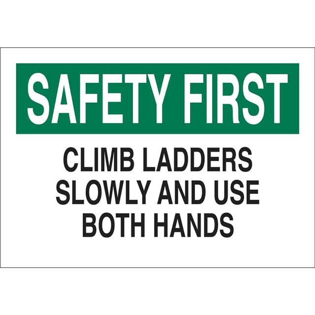 This is manufactured by Brady Corporation. The manufacturer part number is 42589. Label with a size of 14.00" l x 10.00" w (355.6mm x 254.0mm). The product is rohs3 compliant. It is assigned with possible HTSUS value of 8310.00.0000. It has a classic black and green legend, white background colour. The product brady®, is a highly preferred choice for users. The product is made from highly stable and reliable aluminum. In addition, it is reach unaffected. Its typical moisture sensitivity level is not applicable. In addition, bulk is the available packaging type of the product. A bespoke label is a safety first. climb ladders slowly and use both hands label. The product is suitable for use with safety. It has a long 4 weeks standard lead time. The brady corporation's product offers user-desired applications. The product is designated with the ear99 code number.