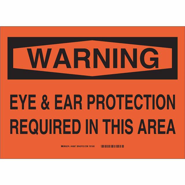 This is manufactured by Brady Corporation. The manufacturer part number is 44687. Label with a size of 14.00" l x 10.00" w (355.6mm x 254.0mm). The product is rohs3 compliant. It is assigned with possible HTSUS value of 3926.90.9985. It is shipped in bulk package . It has a classic black legend, orange background colour. The product brady®, is a highly preferred choice for users. The product is made from highly stable and reliable fiberglass. In addition, it is reach unaffected. Its typical moisture sensitivity level is not applicable. A bespoke label is a warning. eye. ear protection required in this area label. The product is suitable for use with warning. It has a long 4 weeks standard lead time. The product is designated with the ear99 code number.