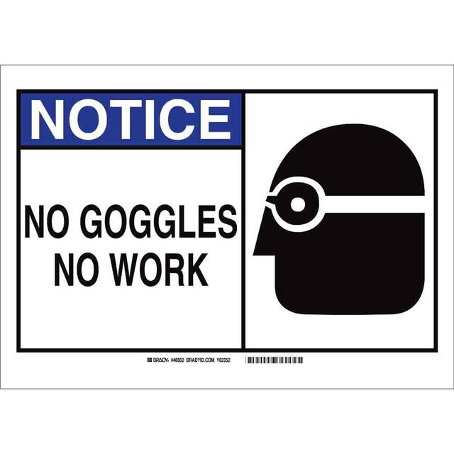 This is manufactured by Brady Corporation. The manufacturer part number is 46662. Label with a size of 14.00" l x 10.00" w (355.6mm x 254.0mm). The product is rohs3 compliant. It is assigned with possible HTSUS value of 8310.00.0000. It is shipped in bulk package . It has a classic black and blue legend, white background colour. The product brady®, is a highly preferred choice for users. The product is made from highly stable and reliable aluminum. In addition, it is reach unaffected. Its typical moisture sensitivity level is not applicable. A bespoke label is a notice. no goggles no work label. The product is suitable for use with notice. It has a long 4 weeks standard lead time. The product is designated with the ear99 code number.