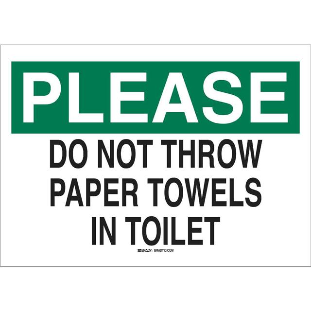 This is manufactured by Brady Corporation. The manufacturer part number is 56691. Label with a size of 14.00" l x 10.00" w (355.6mm x 254.0mm). The product is rohs3 compliant. It is assigned with possible HTSUS value of 3926.90.9985. It is shipped in bulk package . It has a classic black and green legend, white background colour. The product brady®, is a highly preferred choice for users. The product is made from highly stable and reliable polyester. In addition, it is reach unaffected. Its typical moisture sensitivity level is not applicable. A bespoke label is a please. do not throw paper towels in toilet label. The product is suitable for use with warning. It has a long 4 weeks standard lead time. The product is designated with the ear99 code number.