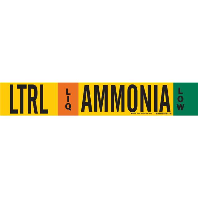 This is manufactured by Brady Corporation. The manufacturer part number is 59933. Label with a size of 24.00" l x 4.00" w (609.6mm x 101.6mm). The product is not applicable. It is assigned with possible HTSUS value of 3926.90.9989. It has a classic black, green and orange legend, yellow background colour. The product brady®, is a highly preferred choice for users. The product is made from highly stable and reliable polyester. In addition, it is reach unaffected. Its typical moisture sensitivity level is not applicable. In addition, bulk is the available packaging type of the product. A bespoke label is a ltrl ammonia label. The product is suitable for use with warning. It has a long 4 weeks standard lead time. The brady corporation's product offers user-desired applications. The product is designated with the ear99 code number.