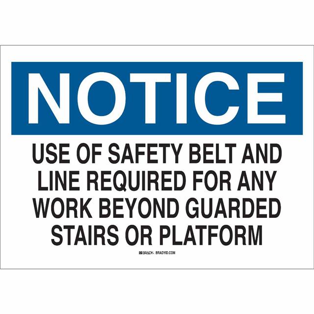 This is manufactured by Brady Corporation. The manufacturer part number is 69546. Label with a size of 14.00" l x 10.00" w (355.6mm x 254.0mm). The product is rohs3 compliant. It is assigned with possible HTSUS value of 3926.90.9985. It is shipped in bulk package . It has a classic black and blue legend, white background colour. The product brady®, is a highly preferred choice for users. The product is made from highly stable and reliable fiberglass. In addition, it is reach unaffected. Its typical moisture sensitivity level is not applicable. A bespoke label is a notice. use of safety belt and line required for any work beyond guarded stairs or platform label. The product is suitable for use with notice. It has a long 4 weeks standard lead time. The product is designated with the ear99 code number.