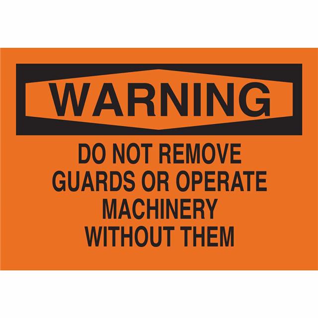 This is manufactured by Brady Corporation. The manufacturer part number is 69576. Label with a size of 14.00" l x 10.00" w (355.6mm x 254.0mm). The product is rohs3 compliant. It is assigned with possible HTSUS value of 3926.90.9985. It is shipped in bulk package . It has a classic black legend, orange background colour. The product brady®, is a highly preferred choice for users. The product is made from highly stable and reliable fiberglass. In addition, it is reach unaffected. Its typical moisture sensitivity level is not applicable. A bespoke label is a warning. do not remove guards or operate machinery without label. The product is suitable for use with warning. It has a long 4 weeks standard lead time. The product is designated with the ear99 code number.