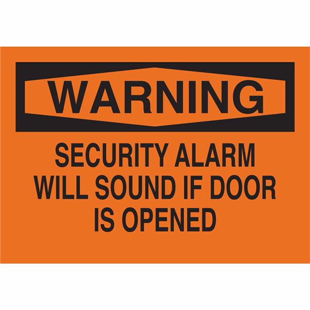 This is manufactured by Brady Corporation. The manufacturer part number is 69607. Label with a size of 14.00" l x 10.00" w (355.6mm x 254.0mm). The product is rohs3 compliant. It is assigned with possible HTSUS value of 3926.90.9985. It is shipped in bulk package . It has a classic black legend, orange background colour. The product brady®, is a highly preferred choice for users. The product is made from highly stable and reliable fiberglass. In addition, it is reach unaffected. Its typical moisture sensitivity level is not applicable. A bespoke label is a warning. security alarm will sound if door is opened label. The product is suitable for use with warning. It has a long 4 weeks standard lead time. The product is designated with the ear99 code number.