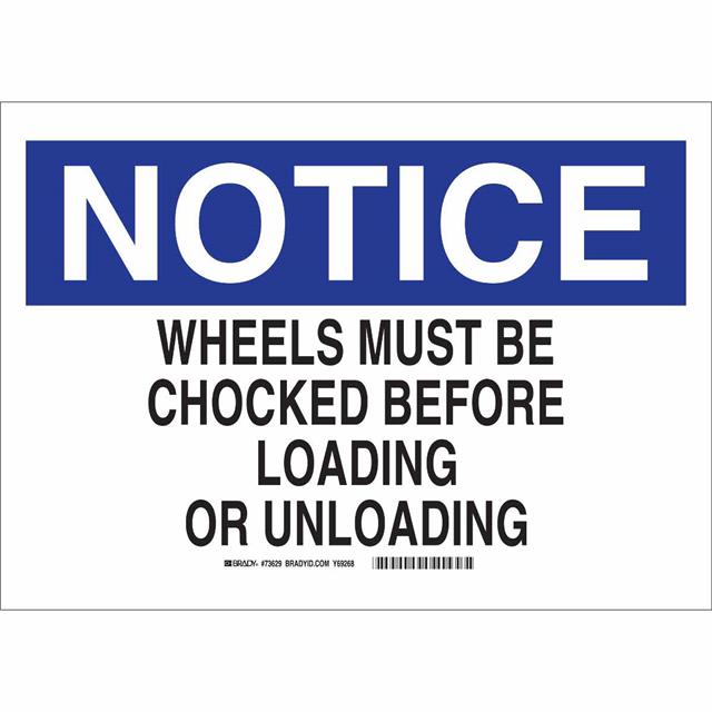 This is manufactured by Brady Corporation. The manufacturer part number is 73630. Label with a size of 20.00" l x 14.00" w (508.0mm x 355.6mm). The product is rohs3 compliant. It is assigned with possible HTSUS value of 3926.90.9985. It is shipped in bulk package . It has a classic black and blue legend, white background colour. The product brady®, is a highly preferred choice for users. The product is made from highly stable and reliable fiberglass. In addition, it is reach unaffected. Its typical moisture sensitivity level is not applicable. A bespoke label is a notice. wheels must be chocked before loading and unloading label. The product is suitable for use with notice. It has a long 4 weeks standard lead time. The product is designated with the ear99 code number.
