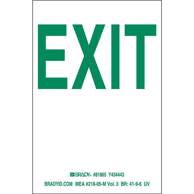 This is manufactured by Brady Corporation. The manufacturer part number is 81865. Label with a size of 6.00" l x 4.00" w (152.4mm x 101.6mm). The product is rohs3 compliant. It is assigned with possible HTSUS value of 3926.90.9985. It is shipped in bulk package . It has a classic green legend, glow background colour. The product brady®, is a highly preferred choice for users. The product is made from highly stable and reliable polyester. In addition, it is reach unaffected. Its typical moisture sensitivity level is not applicable. A bespoke label is a exit label. The product is suitable for use with notice. It has a long 4 weeks standard lead time. The product is designated with the ear99 code number.