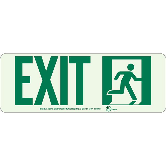 This is manufactured by Brady Corporation. The manufacturer part number is 81920. Label with a size of 14.00" l x 5.00" w (355.6mm x 127.0mm). The product is rohs3 compliant. It is assigned with possible HTSUS value of 3926.90.9985. It is shipped in bulk package . It has a classic green legend, glow background colour. The product brady®, is a highly preferred choice for users. The product is made from highly stable and reliable polyester. In addition, it is reach unaffected. Its typical moisture sensitivity level is not applicable. A bespoke label is a exit label. The product is suitable for use with notice. It has a long 4 weeks standard lead time. The product is designated with the ear99 code number.
